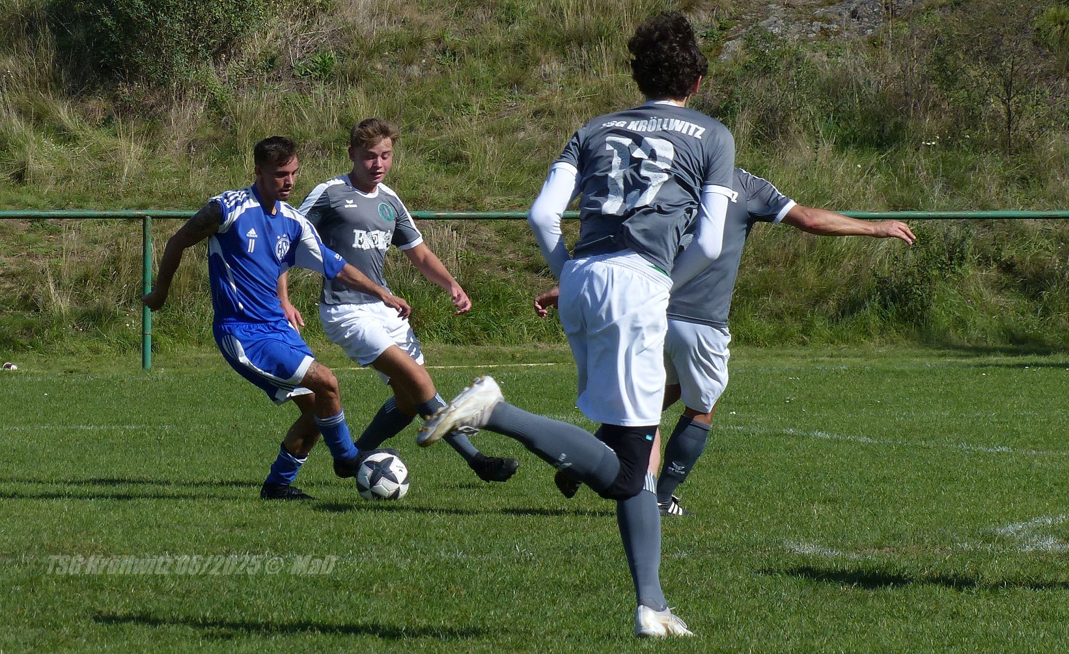 Nach dem Seitenwechsel zeigte Kröllwitz dann auch eine deutlich ansprechende Leistung. Auch wenn die Gluthitze an diesem heißen Spätsommertag einige Akteure an ihre Grenzen brachte. Ein langer Einwurf auf Julius - der dann allein auf den Keeper zulief und versenkte - war der Ausgangspunkt für die schnelle 3:2-Führung der TSG (48.) nach der Pause. Somit war die Richtung für Hälfte zwei vorgegeben. Obwohl die tsg mit einigen guten Chancen schluderte, konnte der Vorsprung nach und nach ausgebaut werden. Anton versenkte eine abgerutschte Flanke zum 4:2 im langen Eck. Laurens verwandelte einen an ihm verwirkten Foulelfmeter selbst zum 5:2. Und Johann strahlte in der 88. Minute einen Schuss vom 16er zum 6:2-Endstand in die Maschen. Ein an diesem Tag hart erarbeiteter und hoch verdienter Heimsieg. (mad/tsg)