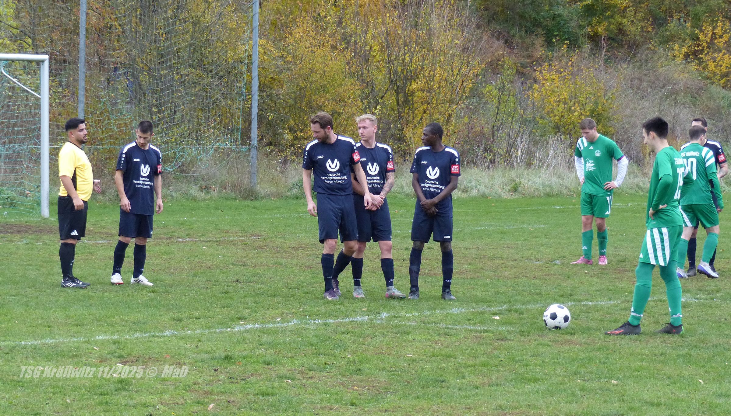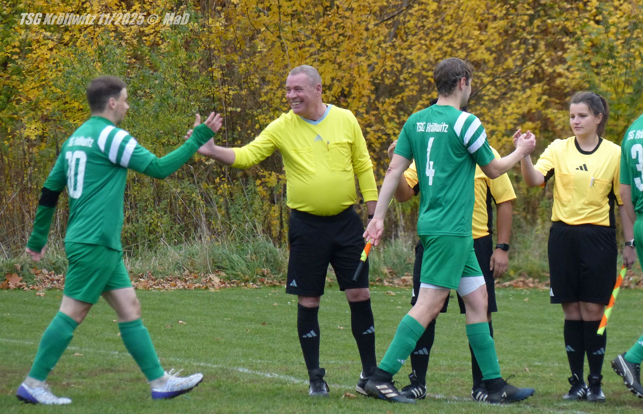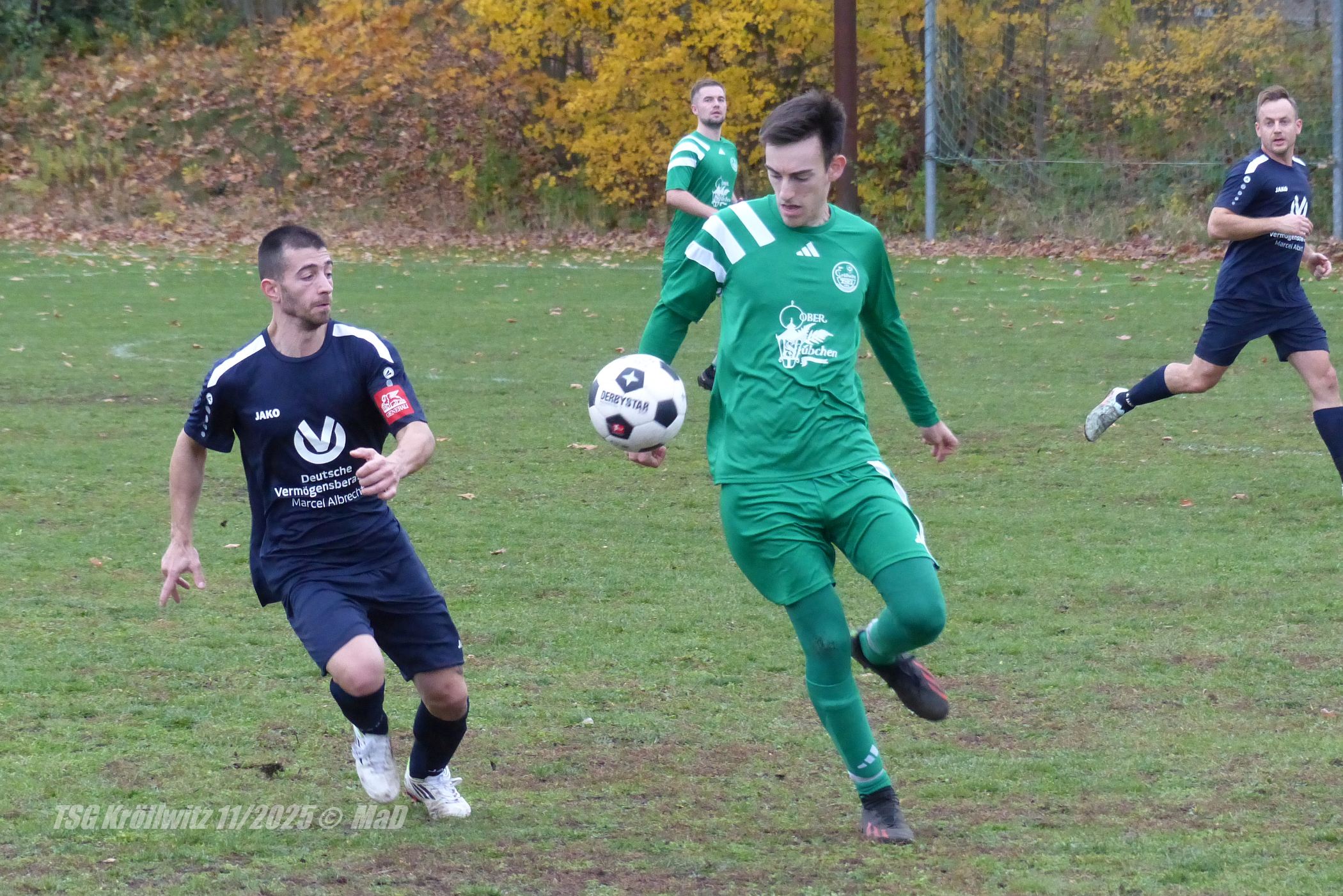 Auch in Hälfte zwei ging es bisweilen sehr ruppig zu. Einer, der das immer wieder schmerzhaft zu spüren bekam, war Kevin H. Nach einem erneuten Foul so um die 30 Meter vor dem Tor, hatte er dann wohl genug. Den fälligen Freistoß nahm er sich selbst und verwandelte mit direktem Schuss neben den langen Pfosten. Danach waren die Messen eigentlich gesungen. Mit etwas mehr Kaltschnäuzigkeit, hätte Kröllwitz sogar das eine oder andere Tor nachlegen können. Bestes Beispiel dafür war der eingewechselte Tom B., der in der 90. Minute allein auf den Keeper zulaufen konnte, aber letztlich nicht netzten konnte. Egal. Drei wichtige Punkte gegen einen direkten Konkurrenten im Kampf um den Klassenerhalt.