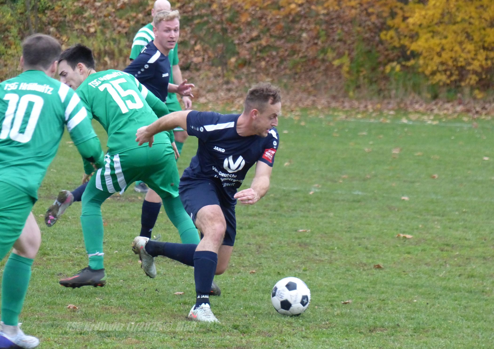 ... Strafraumgrenze, der sogar neben des Tor gegangen wäre, nach vorn abprallen lassen und den Abstauber dann nicht mehr abwehren können. Die Gäste in Grün gaben sich aber nicht auf. Ganz im Gegenteil: Kevin F. attackierte immer wieder die Abwehr der Hausherren, setzte nach und sorgte somit für Verunsicherung. So bereitete er schließlich auch den Ausgleich vor. Ein Ballgewinn gab Laurens die Möglichkeit vor dem Tor und der ließ sich nicht zweimal bitten. Sehr wichtig auch, dass eine Minute vor dem Pausenpfiff dann sogar noch die 2:1-Führung (44.) gelang. Patrick hatte einen langen Abschlag verlängert, Kevin F. setzte nach und schob am Keeper vorbei ins kurze Eck.